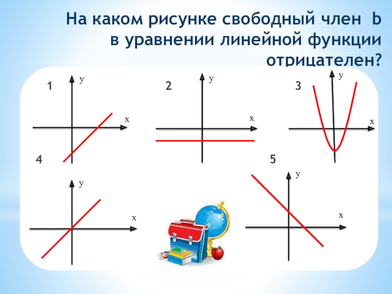 Слайд 23На каком рисунке свободный член b в уравнении линейной функции отрицателен?