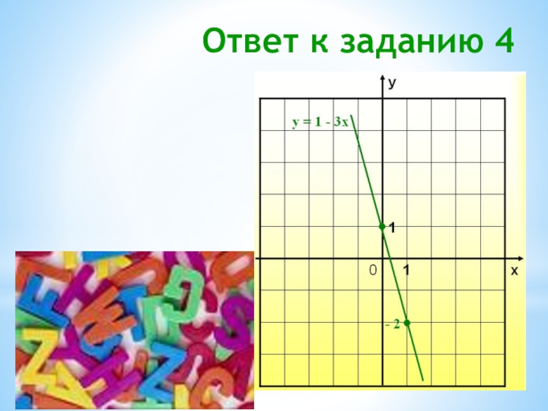Слайд 12С помощью графика линейной функции у = 2х - 6 ответить