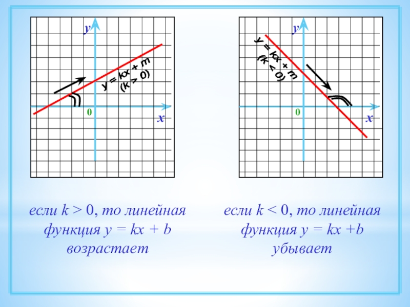 если k > 0, то линейная функция у = kx + b возрастаетесли k < 0, то
