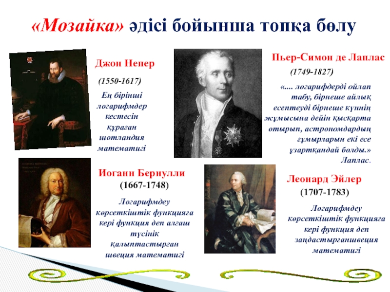 «.... логарифдерді ойлап табу, бірнеше айлық есептеуді бірнеше күннің жұмысына дейін қысқарта отырып, астрономдардың ғұмырларын екі есе ұзартқандай болды.»