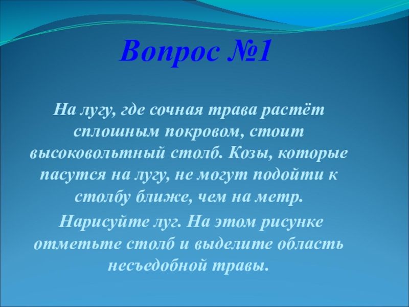 Нарисуйте луг. На этом рисунке отметьте столб и выделите область несъедобной травы.