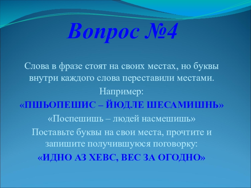 Поставьте буквы на свои места, прочтите и запишите получившуюся поговорку: