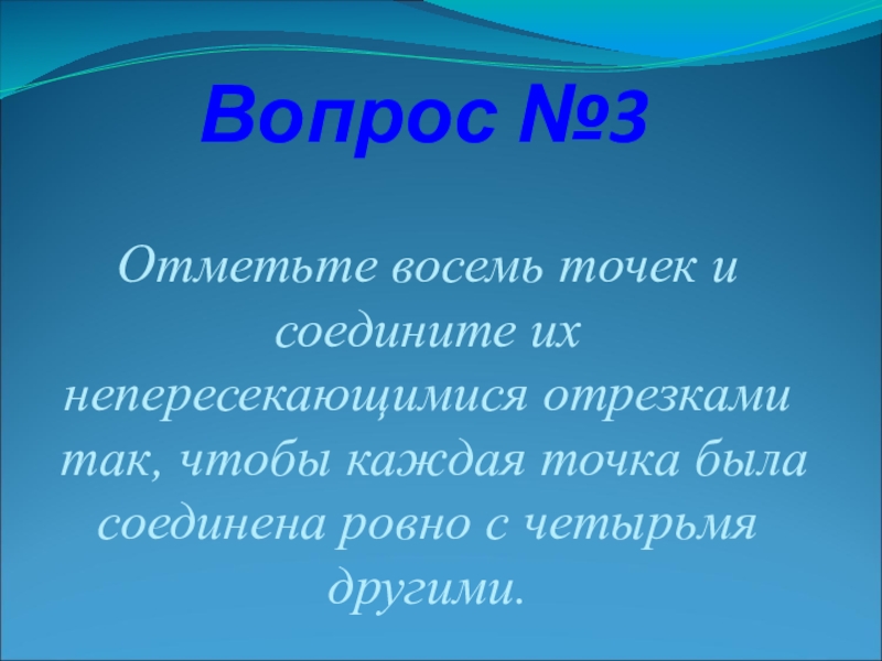 Отметьте восемь точек и соедините их непересекающимися отрезками так, чтобы