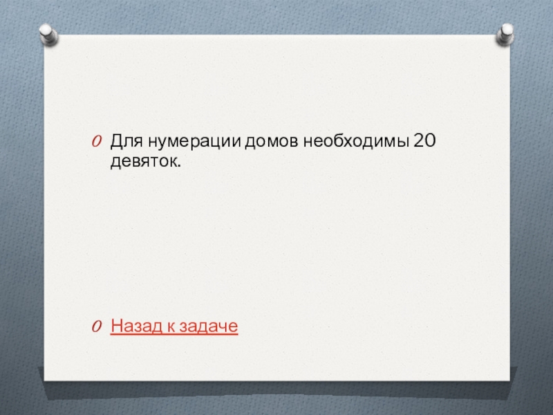 Слайд 21Для нумерации домов необходимы 20 девяток.