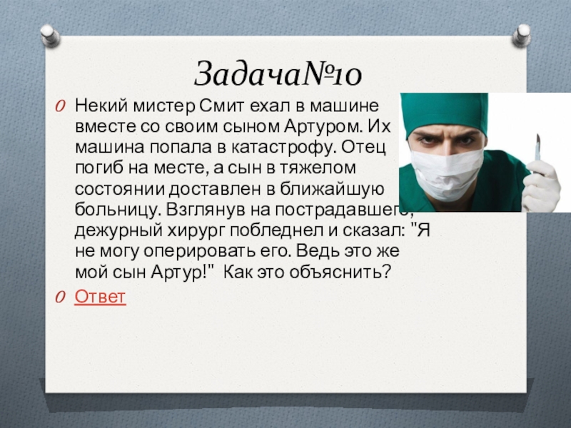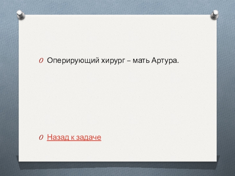 Слайд 24Оперирующий хирург – мать Артура.