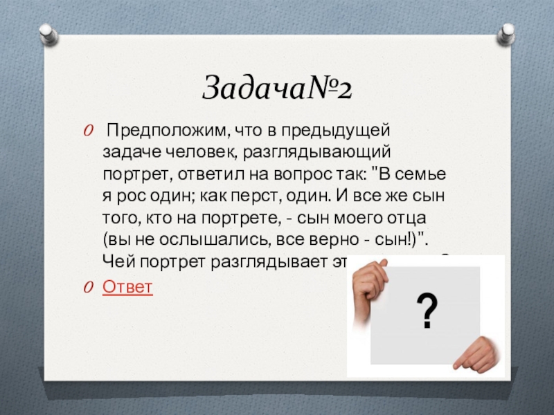 Предположим, что в предыдущей задаче человек, разглядывающий портрет, ответил на