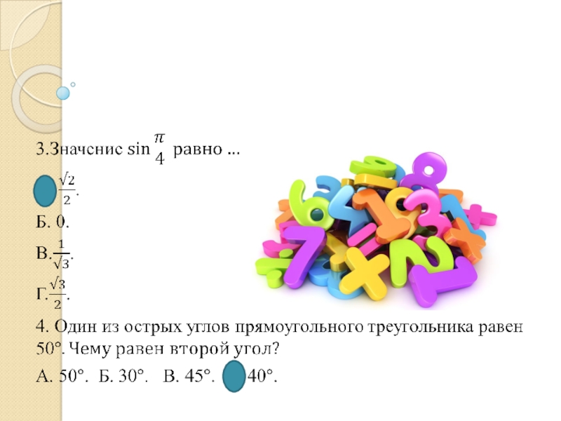 7. Трапеция в переводе с древнегреческого…А. Столик.Б. Парус.  В. Лестница. Г. Тумба.8. Сколько нечетных чисел расположено