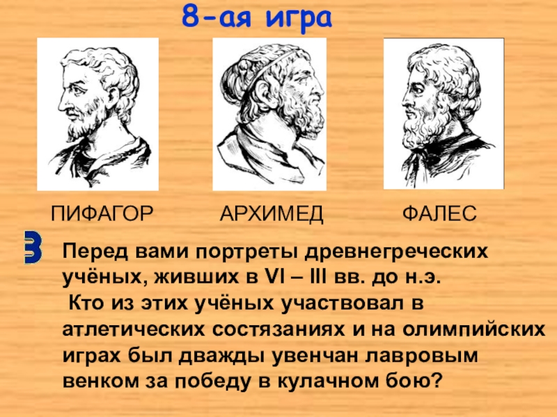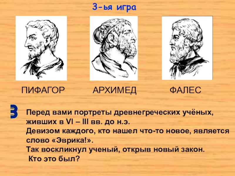 Перед вами портреты древнегреческих учёных, живших в VI – III вв. до н.э.