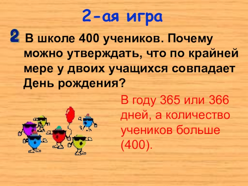 В году 365 или 366 дней, а количество учеников больше (400).
