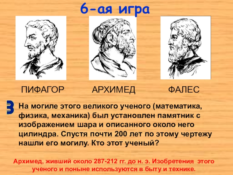 ПИФАГОР АРХИМЕД ФАЛЕС
