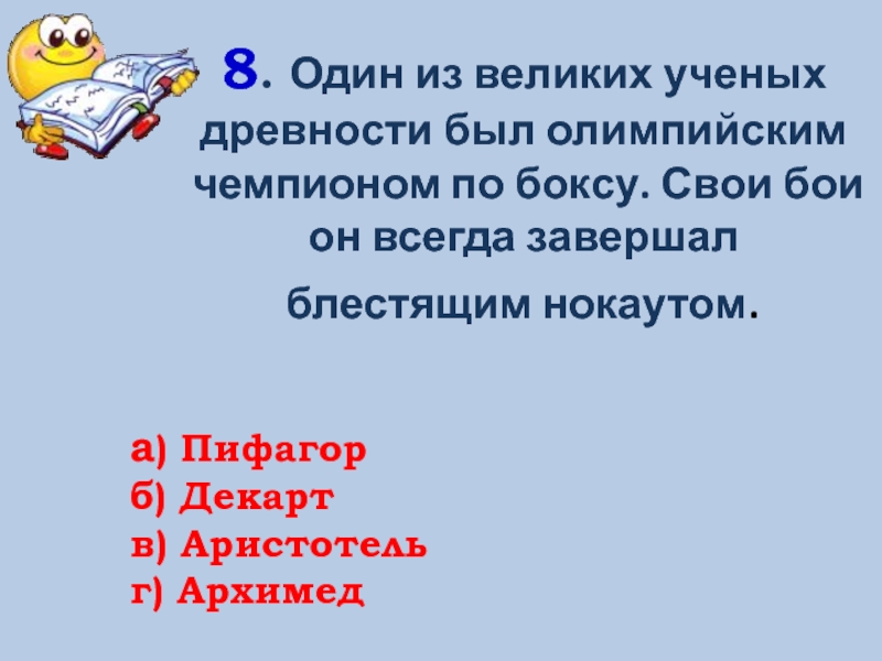 Слайд 148. Один из великих ученых древности был олимпийским чемпионом по боксу.