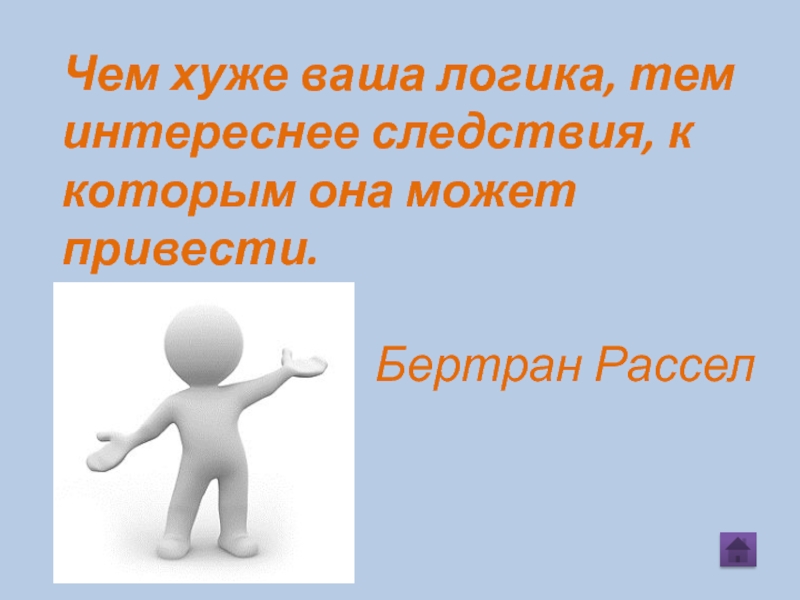 Слайд 28Чем хуже ваша логика, тем интереснее следствия, к которым она может