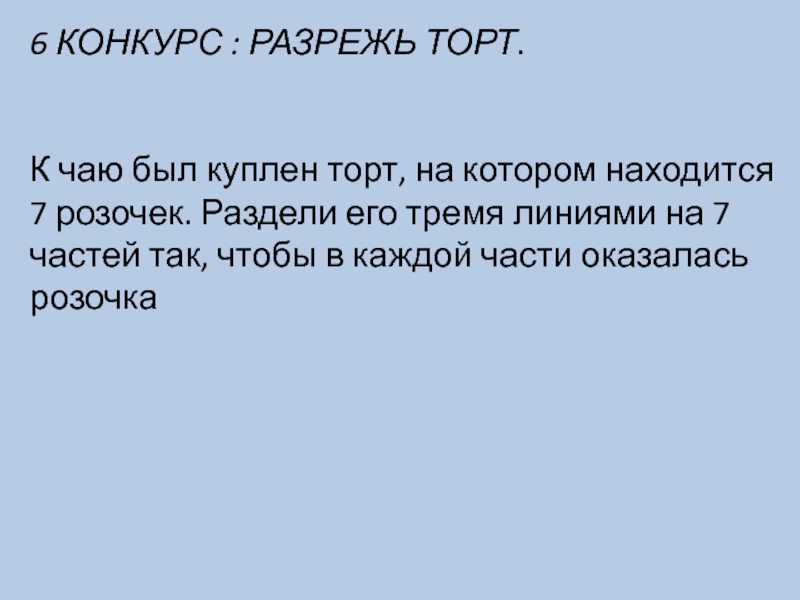 Слайд 336 КОНКУРС : РАЗРЕЖЬ ТОРТ.