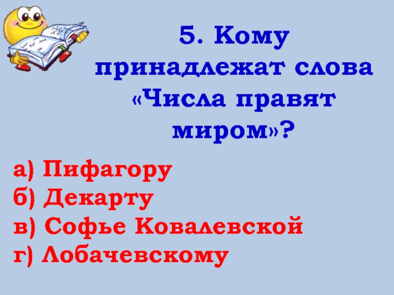 Слайд 105. Кому принадлежат слова «Числа правят миром»?