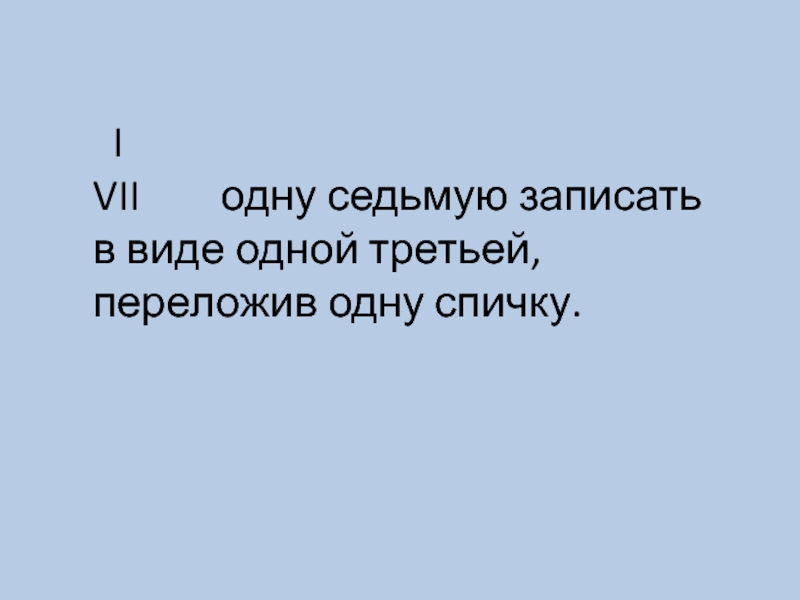 VII одну седьмую записать в виде одной третьей, переложив одну спичку.