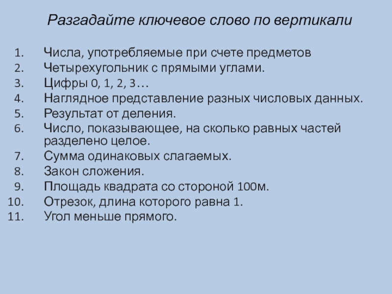 МАТЕМАТИЧЕСКАЯ РАЗМИНКА