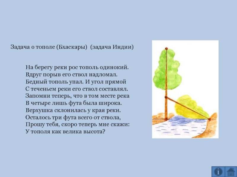 Слайд 39Задача о тополе (Бхаскары) (задача Индии)