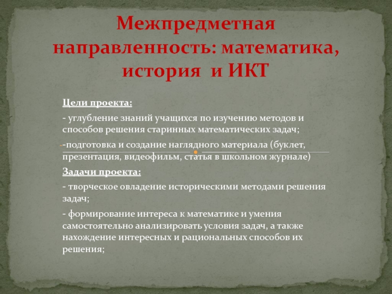 Межпредметная направленность: математика, история и ИКТ