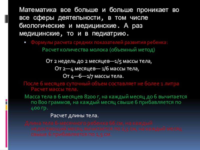После 6 месяцев суточный объем составляет не более 1 литра Расчет массы тела.