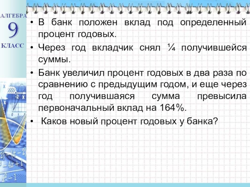 Слайд 11В банк положен вклад под определенный процент годовых.
