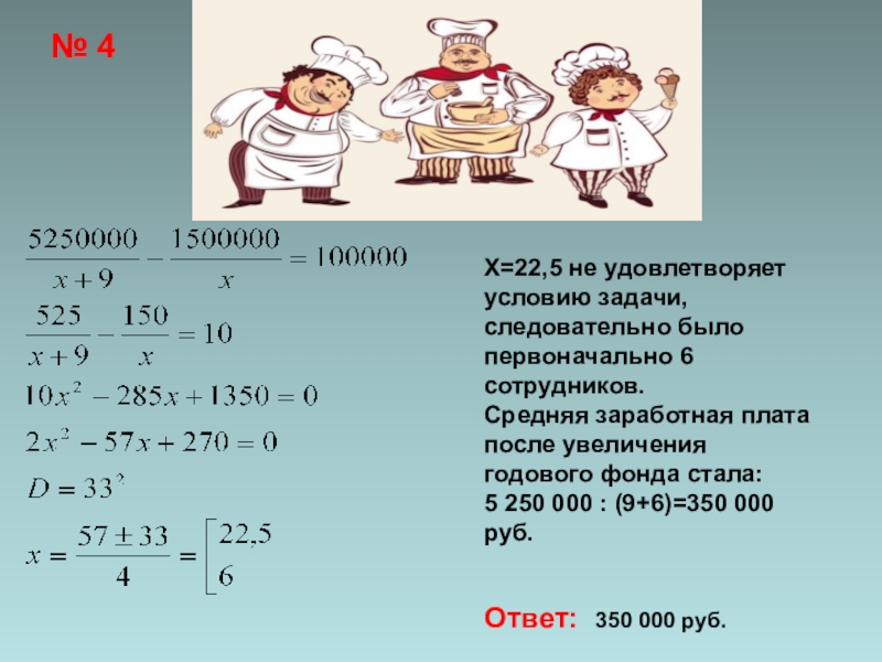 Слайд 30№ 4. Первоначально годовой фонд заработной платы столовой составлял 1500000 рублей.