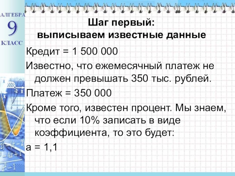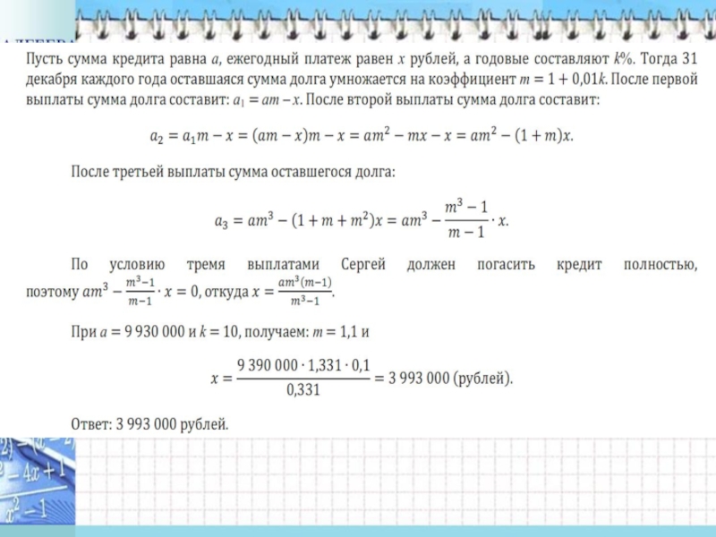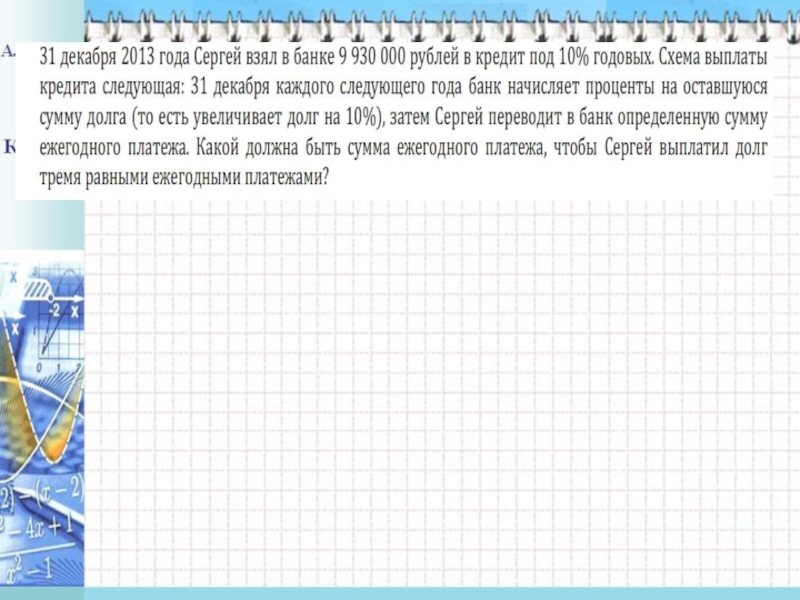 Слайд 10№ 3. 1 января 2015 года Александр Сергеевич взял в банке