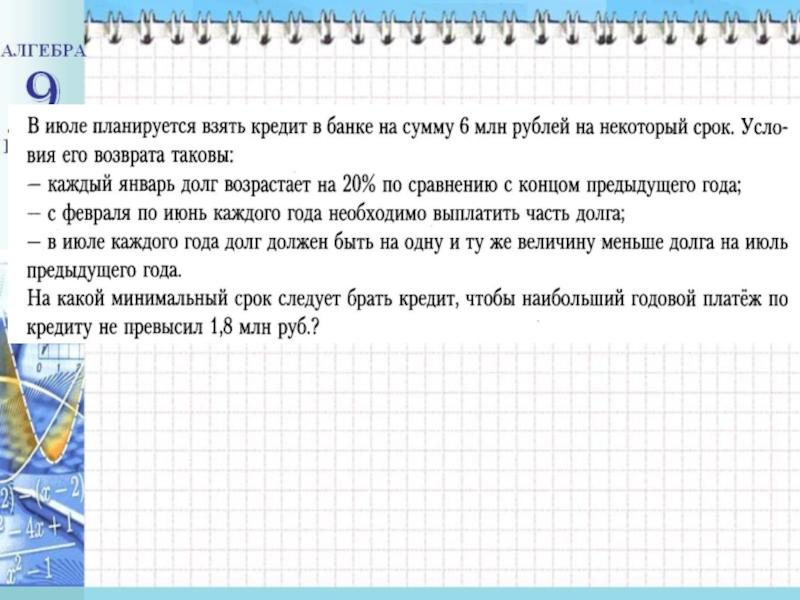Слайд 29В июле планируется взять кредит в банке на сумму 20 млн.