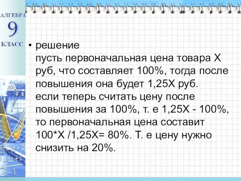 Слайд 2Цена товара a руб. была повышена на 25%. На сколько процентов