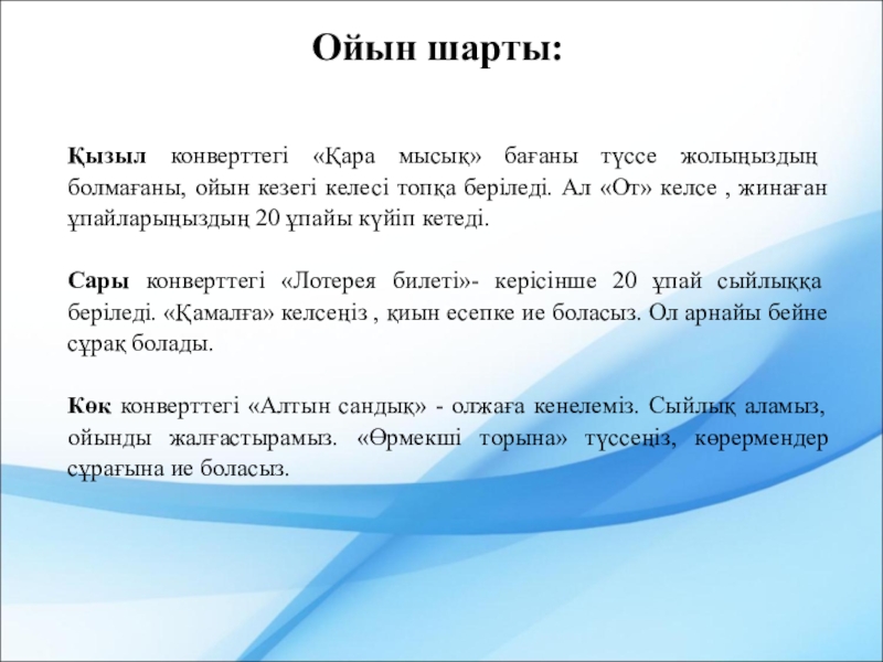 Ойын шарты:
