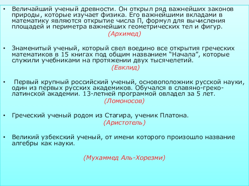 Величайший ученый древности. Он открыл ряд важнейших законов природы, которые изучает