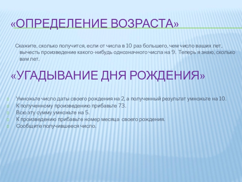«УГАДЫВАНИЕ ДНЯ РОЖДЕНИЯ»