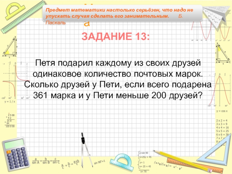 Петя подарил каждому из своих друзей одинаковое количество почтовых марок. Сколько друзей у Пети, если всего подарена 361 марка и у Пети меньше 200 друзей?