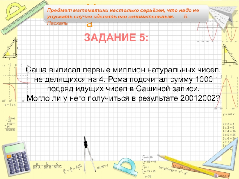 Саша выписал первые миллион натуральных чисел, не делящихся на 4. Рома подсчитал сумму 1000 подряд идущих чисел в Сашиной записи.