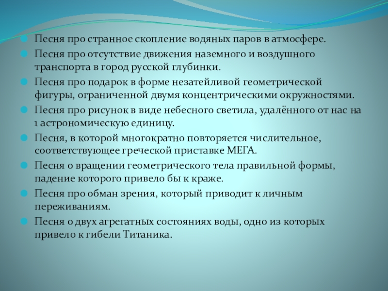 Слайд 19Песня про странное скопление водяных паров в атмосфере.