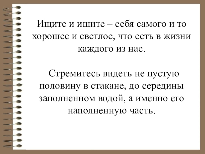 Слайд 129Ищите и ищите – себя самого и то хорошее и светлое,