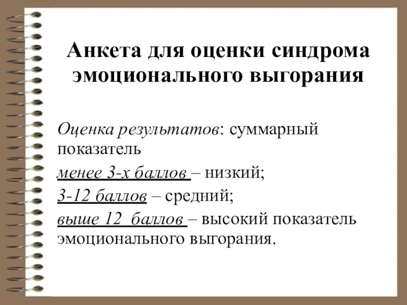 Слайд 125Анкета для оценки синдрома эмоционального выгорания