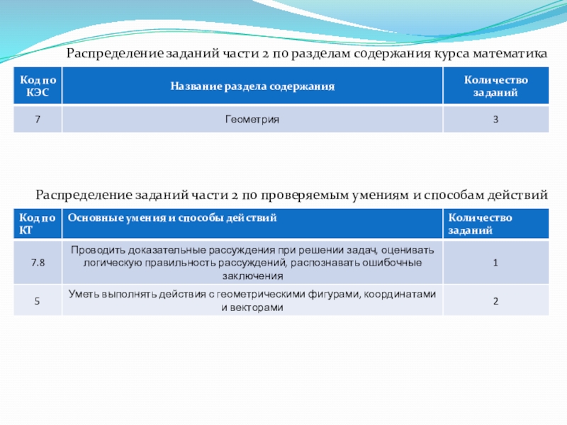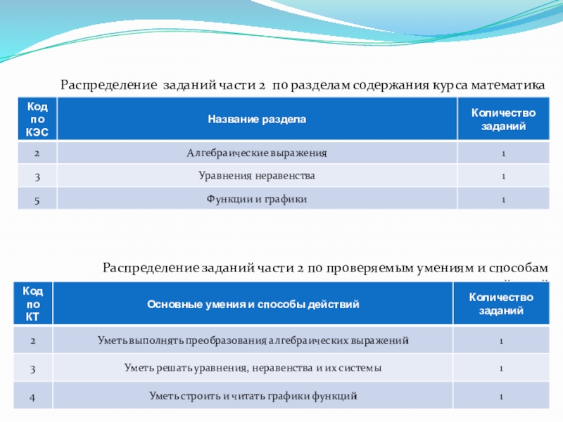 Распределение заданий части 2 по проверяемым умениям и способам действий