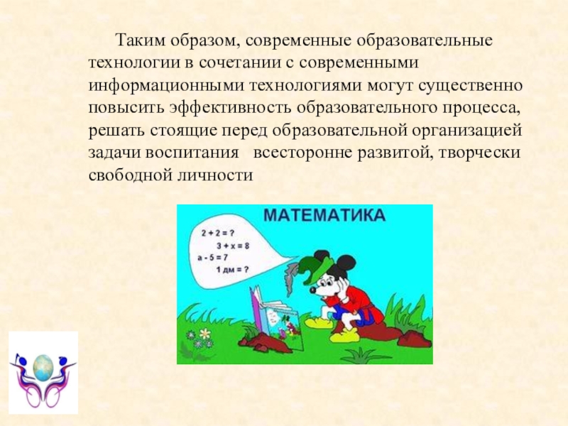 Слайд 52Таким образом, современные образовательные технологии в сочетании с современными информационными технологиями