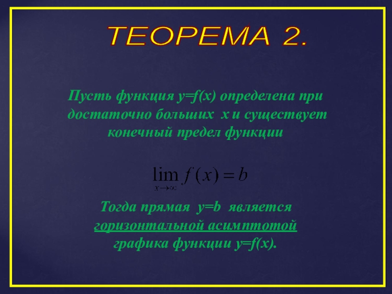 Тогда прямая y=b является горизонтальной асимптотой графика функции y=f(x).