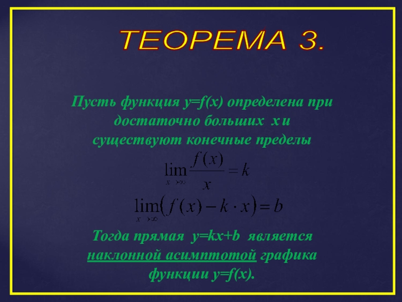 Тогда прямая y=kx+b является наклонной асимптотой графика функции y=f(x).