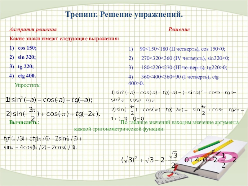 сформировать умения и навыки применять тригонометрические тождества, формулы приведения