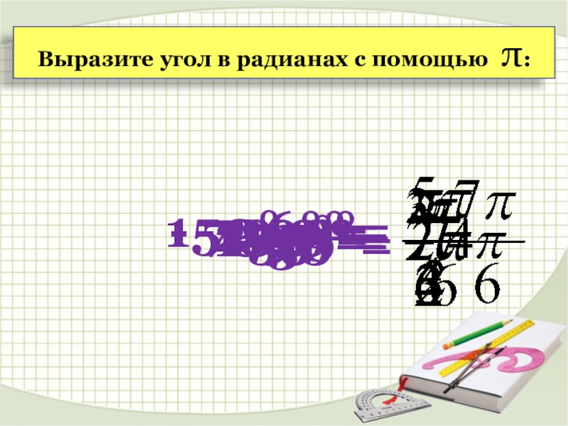 2) Переведите в радианную меру углы: 75, 15, 130, 220, 340