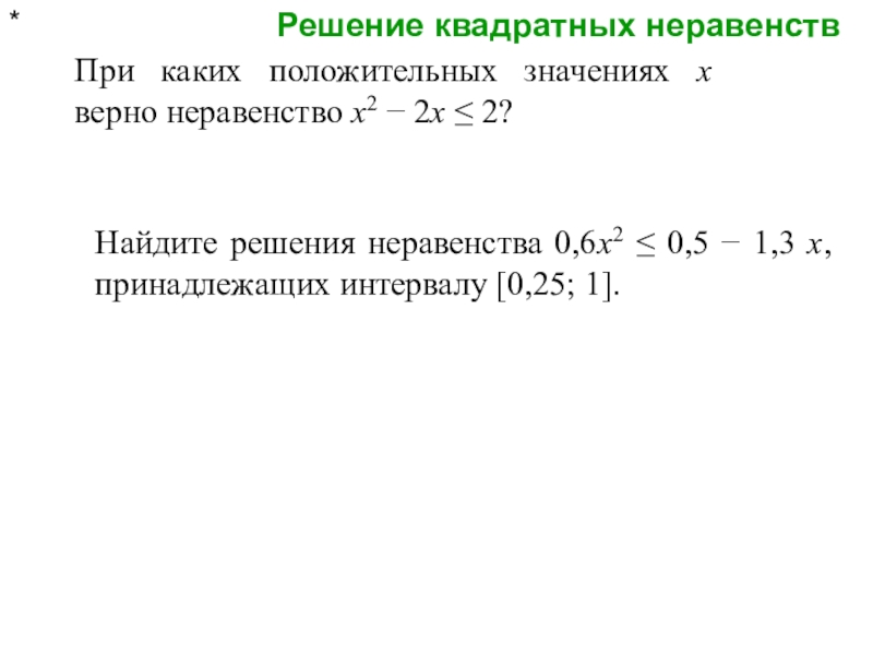 Найдите решения неравенства 0,6x2 ≤ 0,5 − 1,3 x, принадлежащих интервалу [0,25; 1].