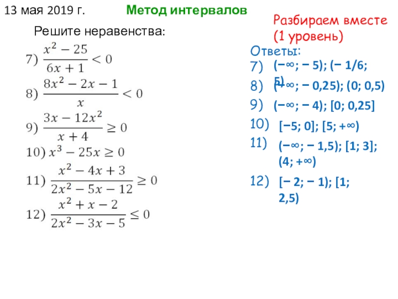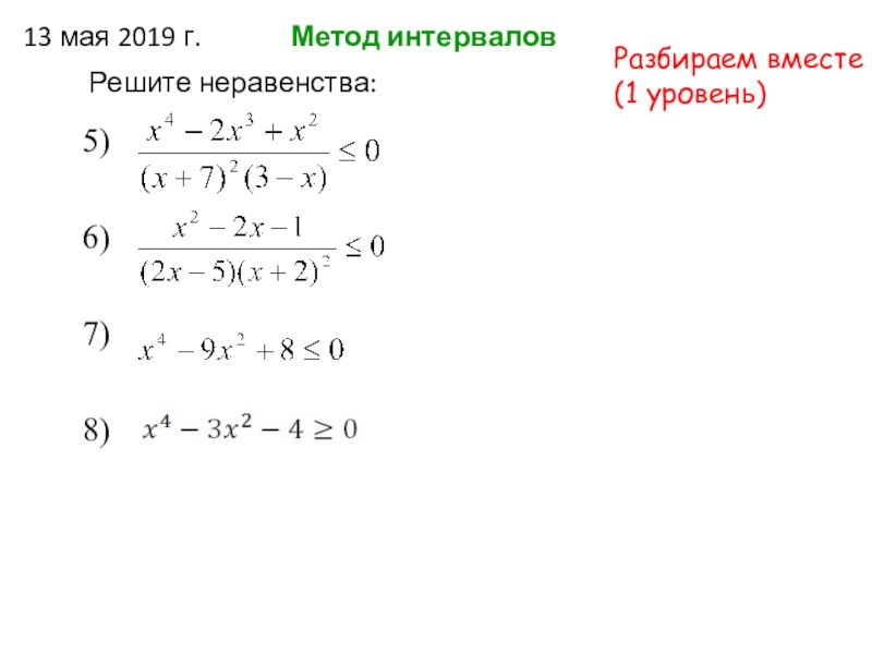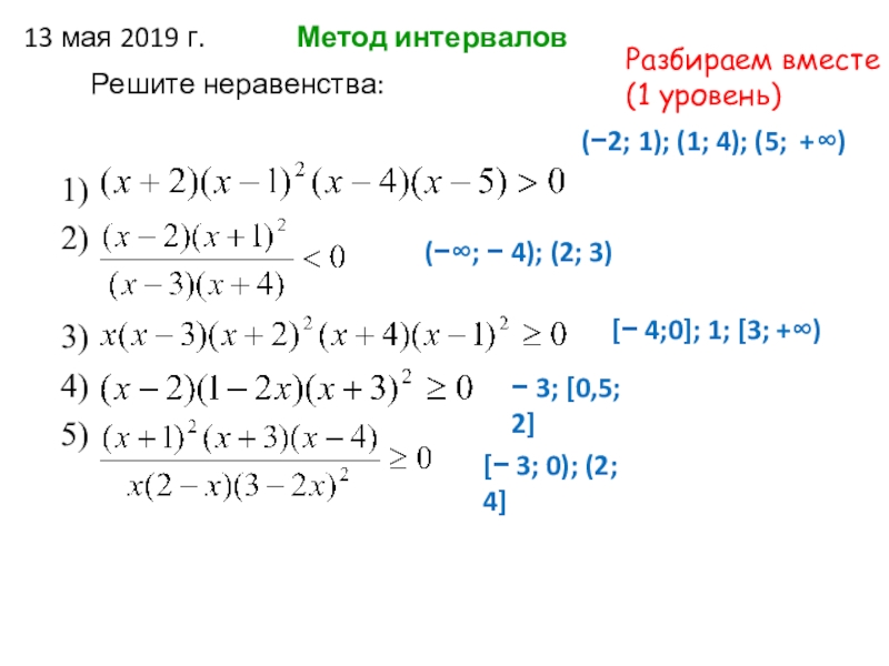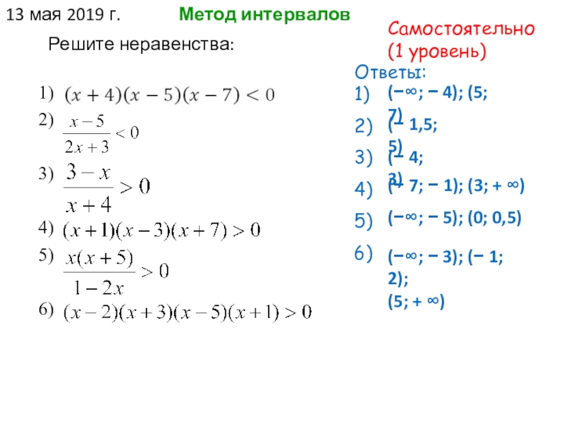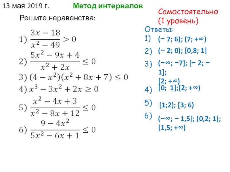 3) исследуйте знак произведения на каждом из получившихся отрезков числовой оси.