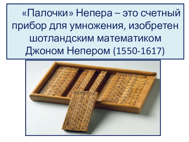 Слайд 10 «Палочки» Непера – это счетный прибор для умножения,