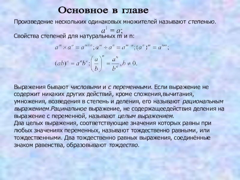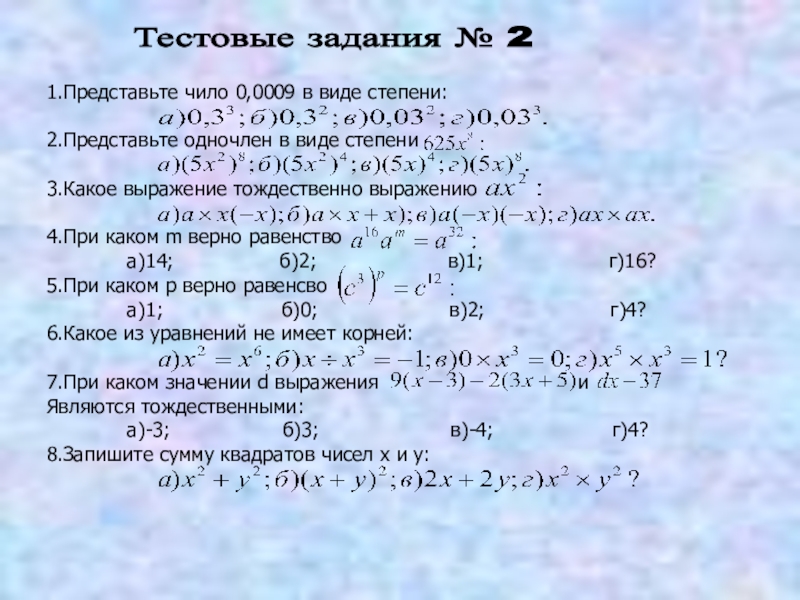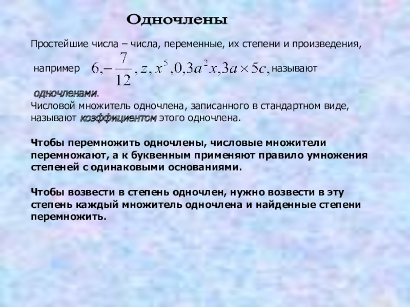 Слайд 19Простейшие выражения – чила, переменные, их степени или произведения. Их называют