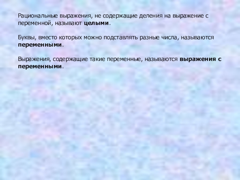 Слайд 5Рациональные выражения, не содержащие деления на выражение с переменной, называют целыми.