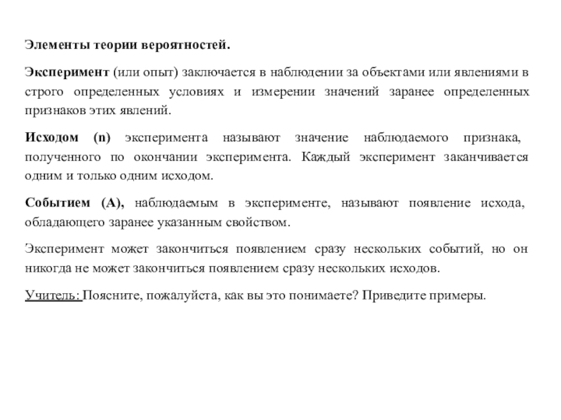 Эксперимент (или опыт) заключается в наблюдении за объектами или