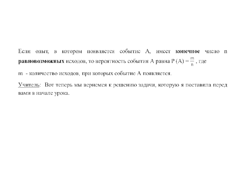 Учитель: Итак, запишем, как рассчитывается вероятность события.