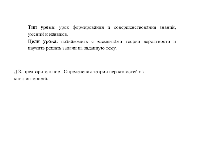 Д.З. предварительное : Определения теории вероятностей из книг, интернета.